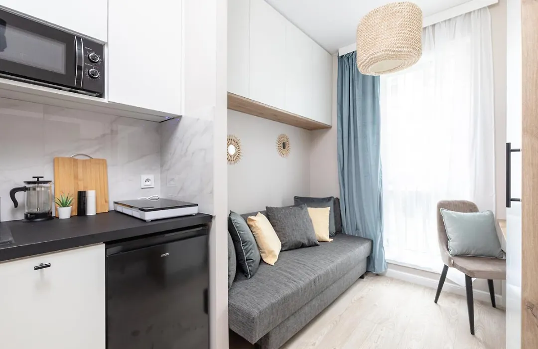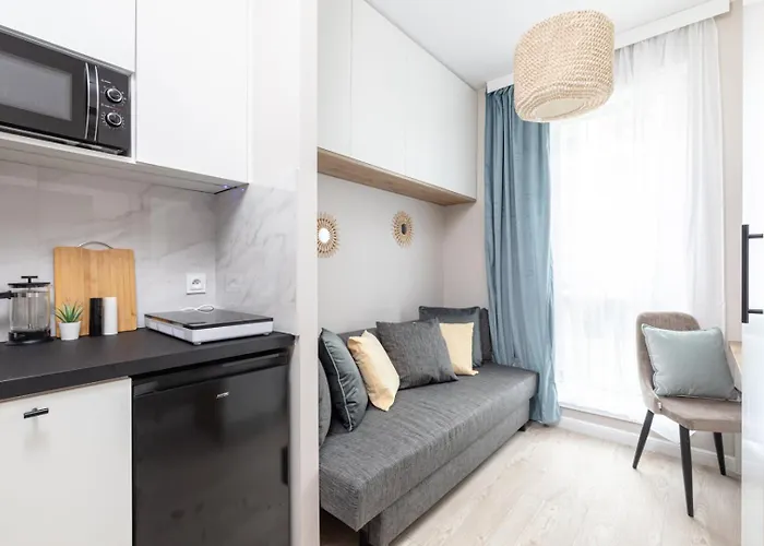 Verbessern Sie Ihren Aufenthalt mit einer Kaffee-/Teemaschine, einem Kühlschrank und Glasgeschirr, die im Apartment Superapart Herbu Oksza 3, Ministudio zur Verfügung stehen. Die Unterkunft befindet sich gleich neben dem Bahnhof Warszawa Ursus.